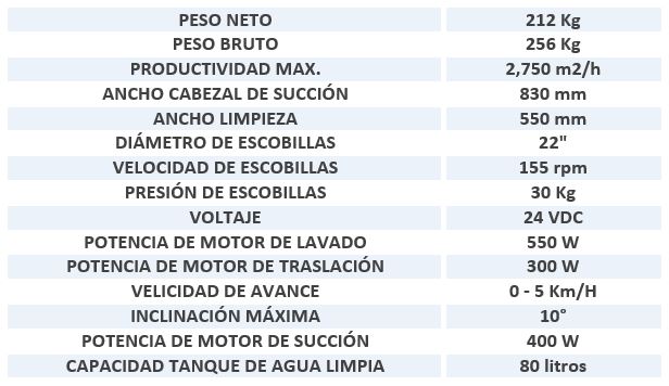 Realiza la limpieza de pisos y el recogo del agua residual en un solo paso, acelerando el tiempo de secado y logrando limpiar hasta 2,750 metros cuadrados en una hora.