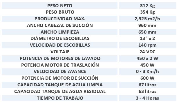 Realiza la limpieza de pisos y el recogo del agua residual en un solo paso, acelerando el tiempo de secado y logrando limpiar hasta 2,925 metros cuadrados en una hora.
